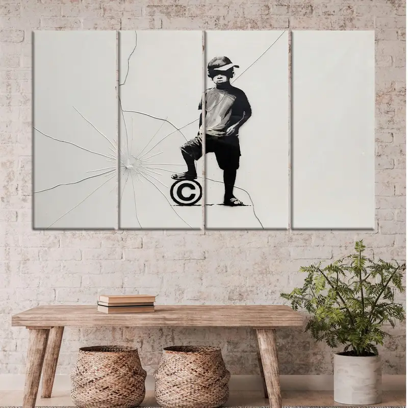 Elegante, von Banksy inspirierte bedruckte Leinwand: Kunstvolle Dekoration für moderne Räume