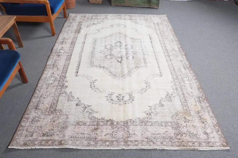 Eleganter beigefarbener Ikat-Teppich, 1,5 x 2,4 m, schicker Wohnraum