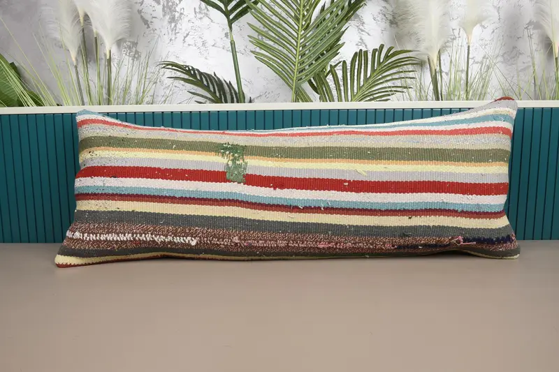 Blau & Rot gestreiftes Kissen, Vintage besticktes Rechteckkissen