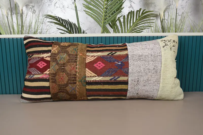Besticktes Southwestern Beige & Braunes Kissen, 16x36 handgemachtes Wurfkissen