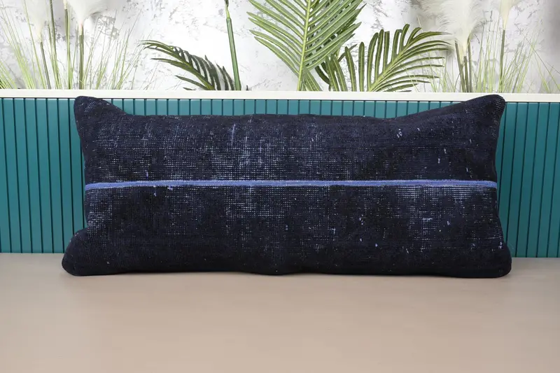 Blaues und bronzefarbenes Patchwork-Wurfkissen, Vintage-gesticktes Kissen