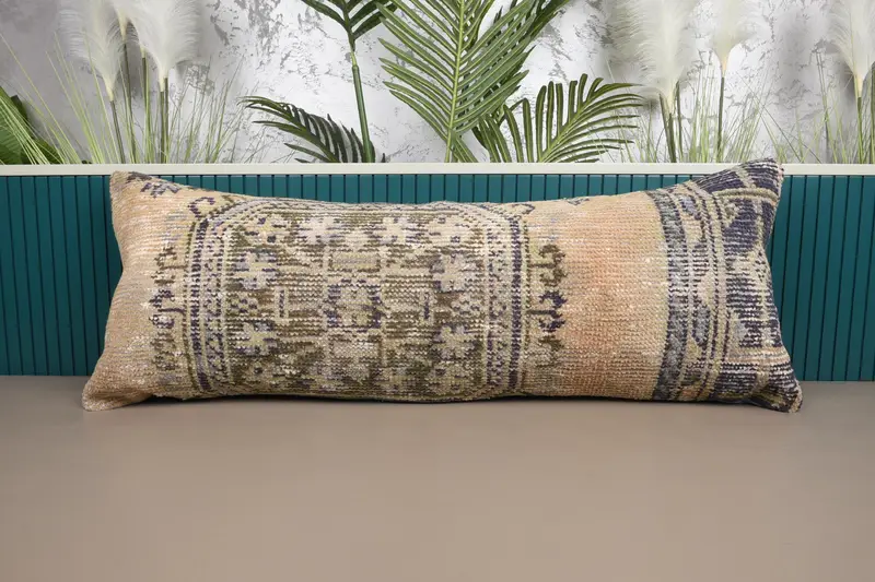 Oranges besticktes Southwestern-Wurfkissen, handgemachtes Vintage-Leinenkissen