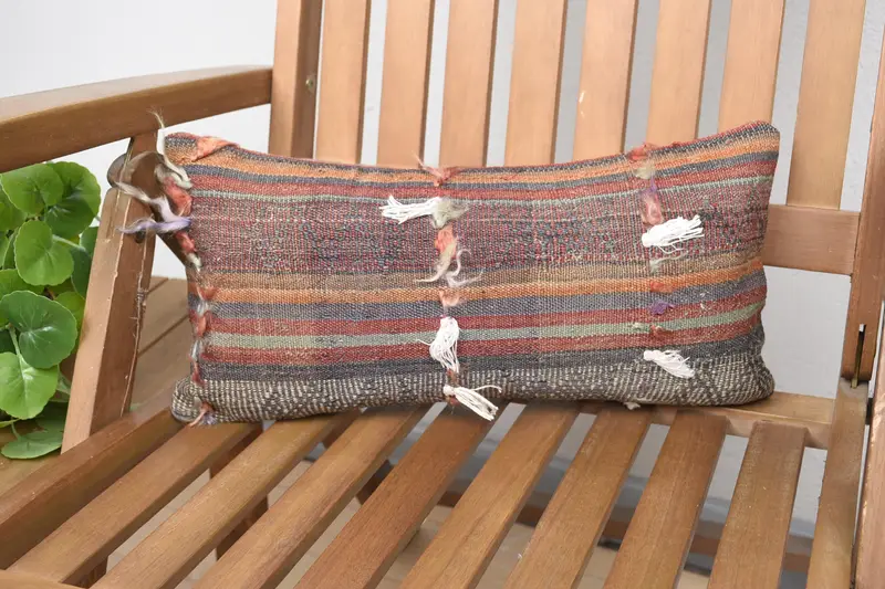 Rot & Orange gestreiftes Kissen, handgefertigtes besticktes Kissen
