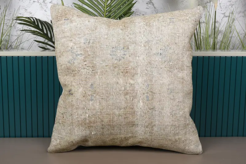 Beigefarbenes Southwestern-Wurfkissen, 24x24 besticktes Kissen mit bronzefarbenen Akzenten