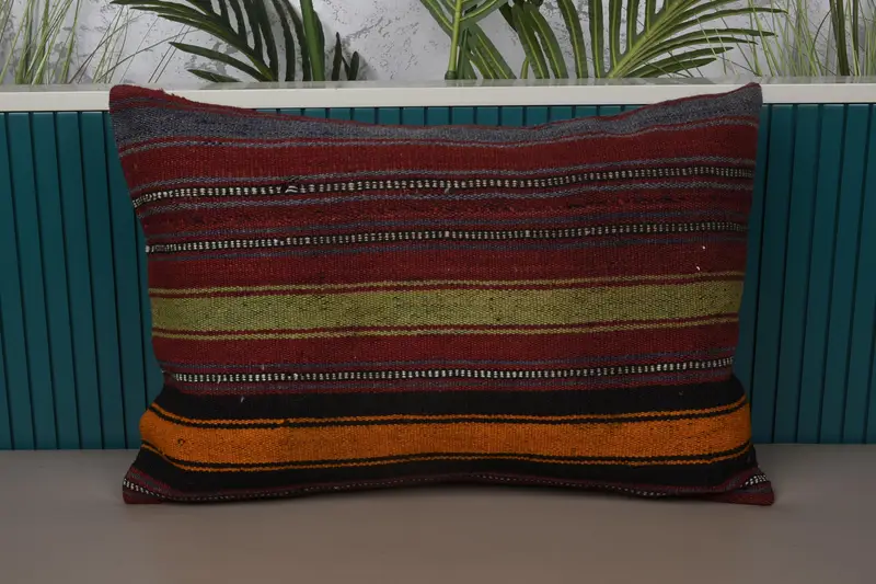 Rot & Bronze gestreiftes Kissen, handgefertigtes besticktes Kissen