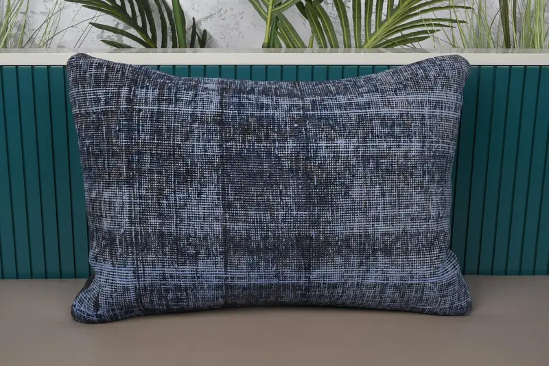 Blaues und braunes Südwestkissen, 16x24 besticktes Wurfkissen