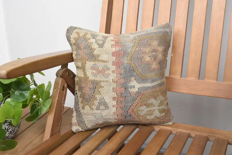 Grau & Grün besticktes Wurfkissen, handgemachtes geometrisches Kissen