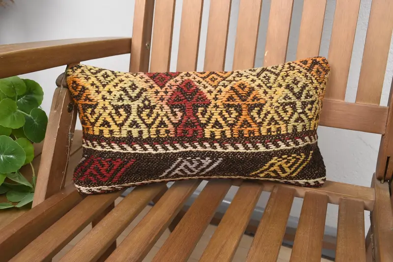 Geometrisches Kissen in Orange und Braun, Vintage-gesticktes Kissen