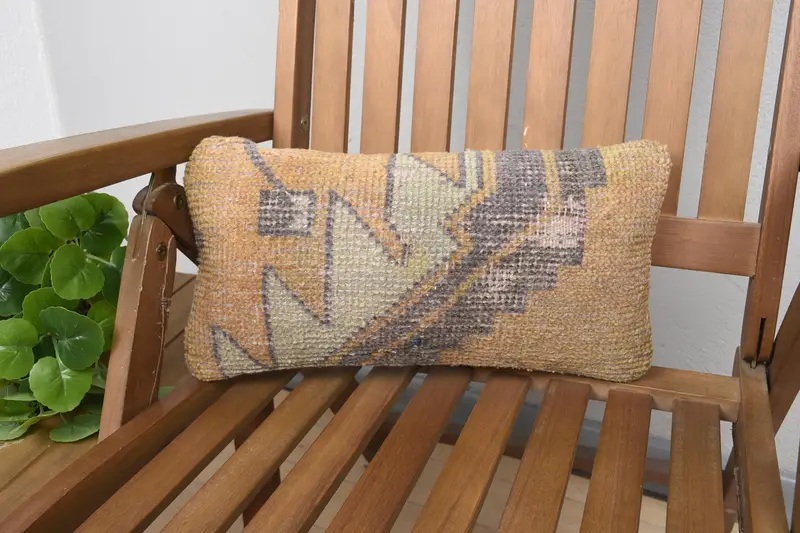 Geometrisches Kissen in Orange und Grau, handgefertigtes besticktes Kissen