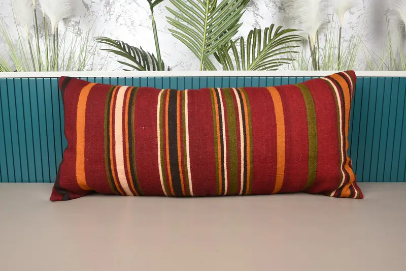 Rot & Orange gestreiftes Kissen, handgemachtes Leinenkissen