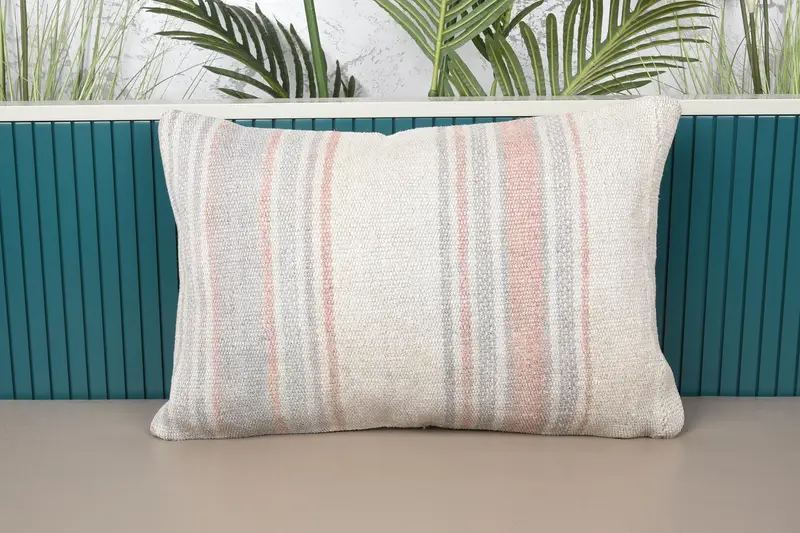 Beige & Orange gestreiftes Wurfkissen, 16x24 besticktes Kissen