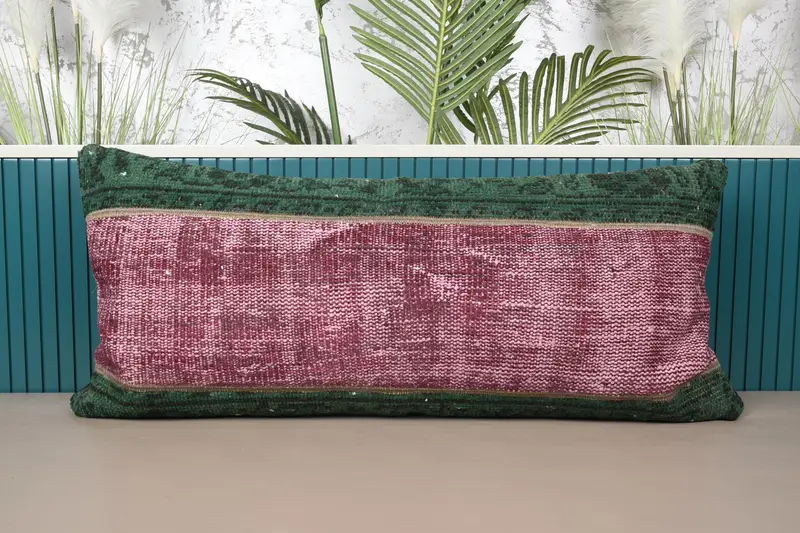 Rot-grünes Patchwork-Wurfkissen, handgefertigtes besticktes Leinenkissen