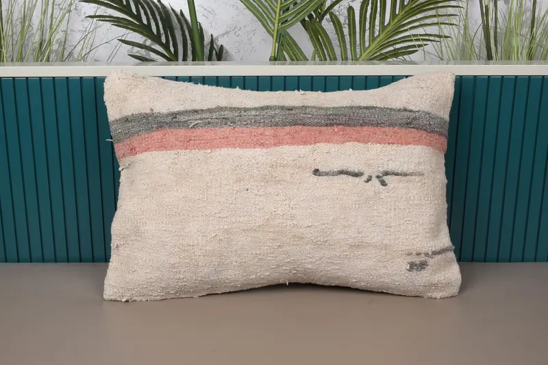 Beige & rot gestreiftes Wurfkissen, 16x24 handgemachtes Kissen