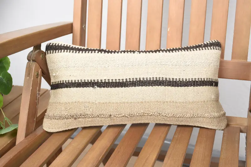 Beige & braun gestreiftes Wurfkissen, Vintage besticktes Kissen