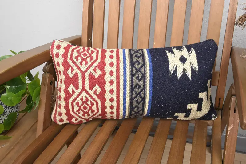 Rot & Beige besticktes Wurfkissen, handgefertigtes geometrisches Kissen