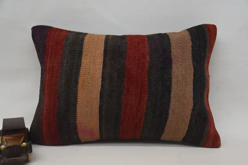 Rot-braun gestreiftes Kissen, handgefertigtes besticktes Kissen