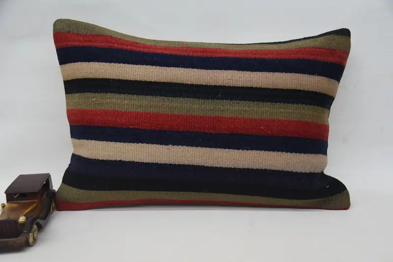 Handgefertigtes gestreiftes Kissen, Rot & Bronze 16x24 Vintage Kissen