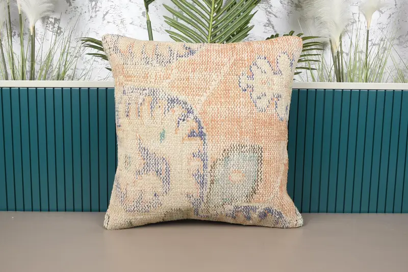 Orangefarbenes Southwestern-Wurfkissen, 20x20 besticktes Kissen