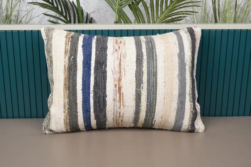 Beige & grau gestreiftes Wurfkissen, 16x24 handgemachtes Kissen