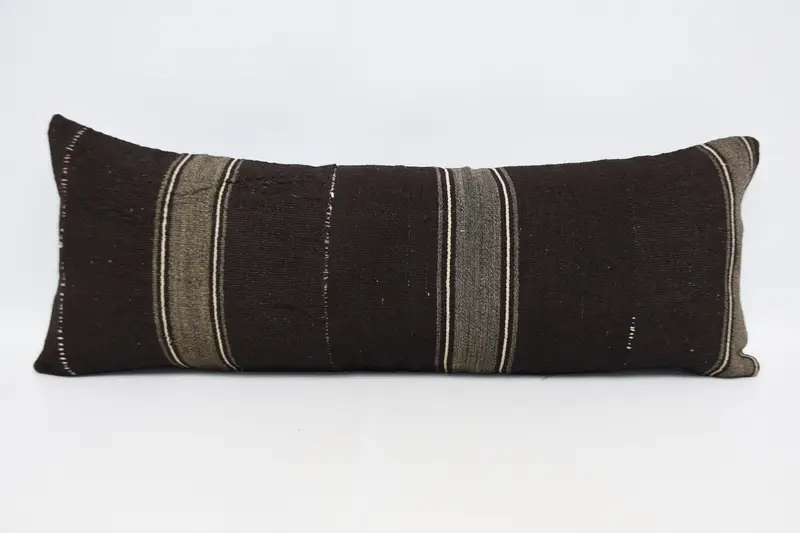 Handgefertigtes gestreiftes Kissen, 16x42 braunes und graues Wurfkissen