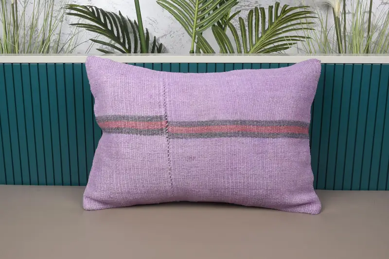 Lila & rotes Patchwork-Wurfkissen, 16x24 besticktes Kissen