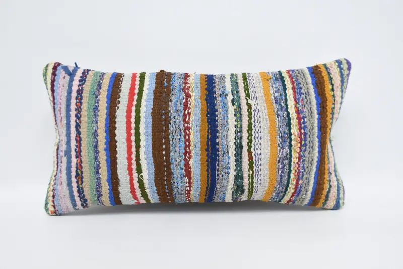 Handgefertigtes blau-orange gestreiftes Kissen, Vintage-Rechteckkissen