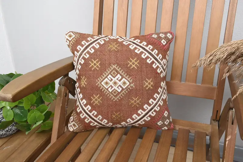 Braun-weiß besticktes Wurfkissen, geometrisches Vintage-Kissen