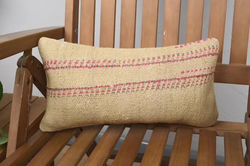 Beige und rosa gestreiftes Kissen, 8x16 besticktes Wurfkissen