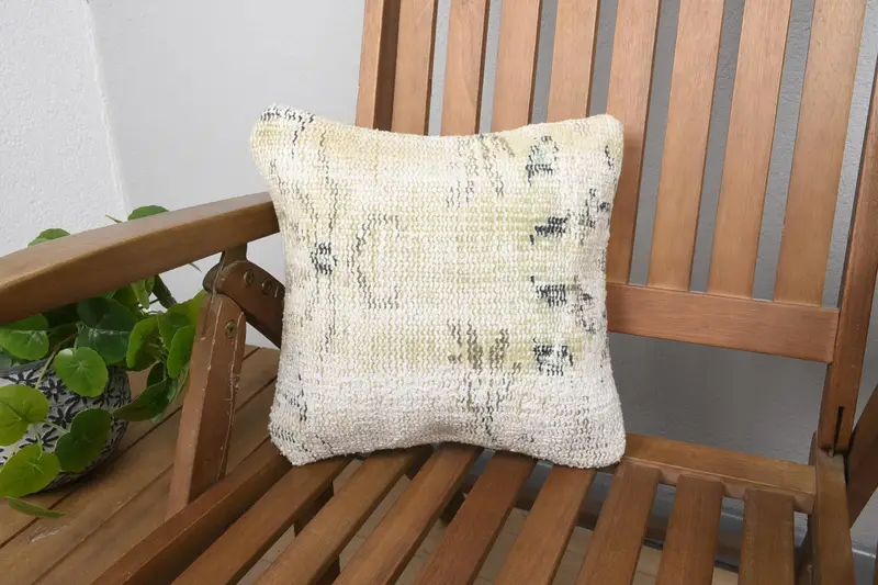Handgefertigtes besticktes Kissen im Südwesten, Vintage-Wurfkissen in Grün und Beige