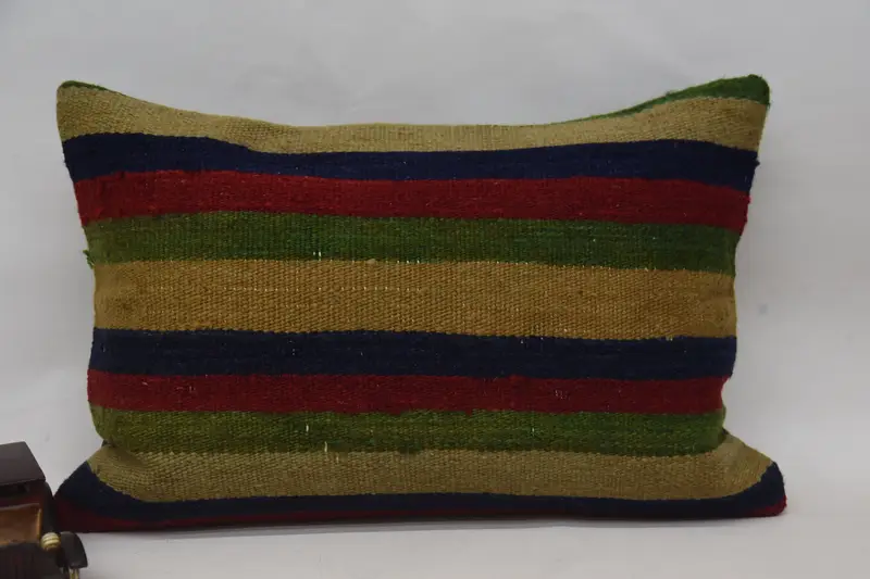 Rot-grün gestreiftes Kissen, handgefertigtes besticktes Kissen