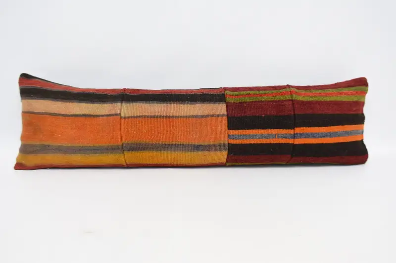 Handgefertigtes 12x42 Orange & Rot gestreiftes Wurfkissen, Vintage Rechteckkissen