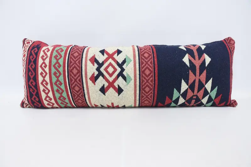 Blau & Rot besticktes Wurfkissen, Vintage geometrisches Kissen