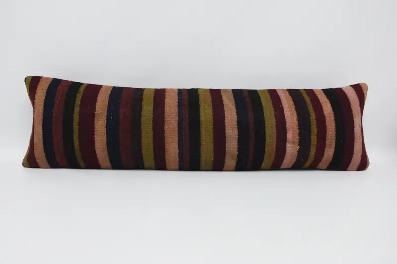 Rot-grün gestreiftes Wurfkissen, 12x42 handgemachtes Kissen