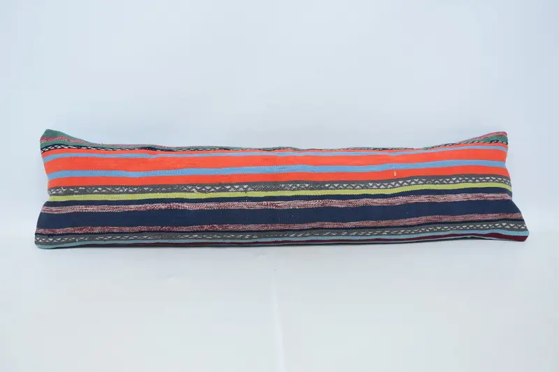 Blau & Rot gestreiftes Kissen, 12x42 handgemachtes Wurfkissen