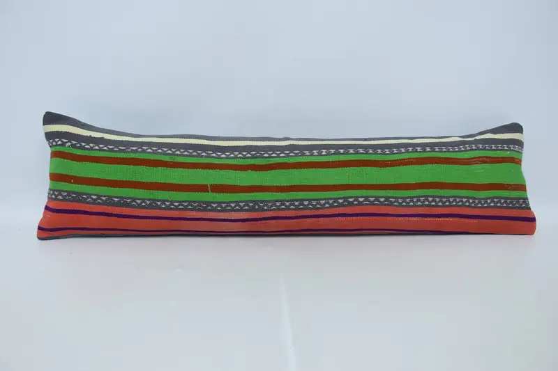 Handgefertigtes gestreiftes Hanfkissen, 12x42 grünes und rotes Kissen