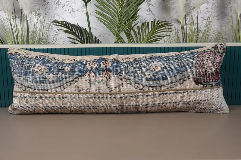 Handgefertigtes 16x48 besticktes Wurfkissen, Vintage Patchwork Kissen