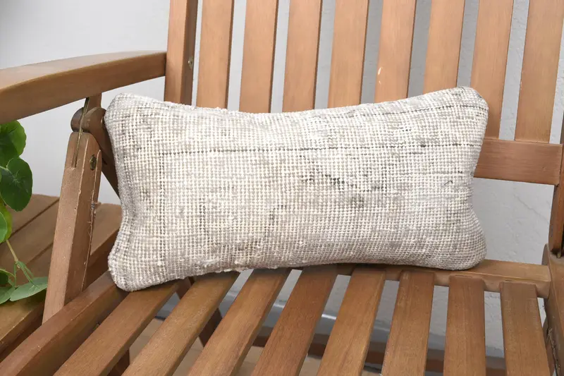 Graues und braunes geometrisches Kissen, Vintage besticktes Kissen