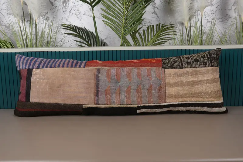 Handgefertigtes Patchwork-Wurfkissen in Beige und Bronze, 16 x 48 Vintage-Kissen