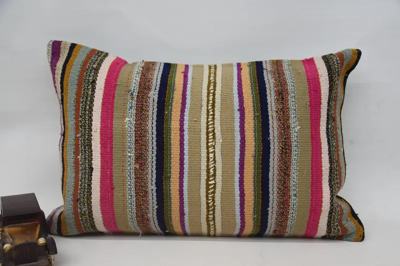 Beige & rosa gestreiftes Kissen, handgefertigtes besticktes Wurfkissen