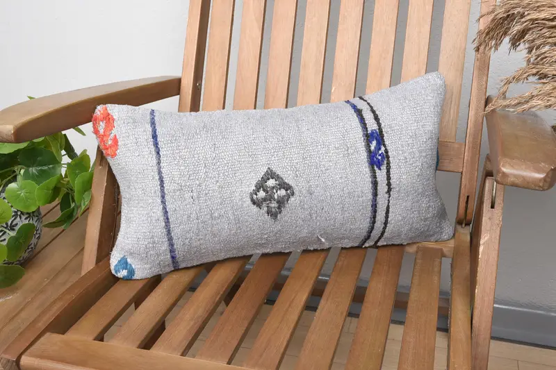 Grau & Bronze besticktes Wurfkissen, 10x20 handgemachtes Kissen