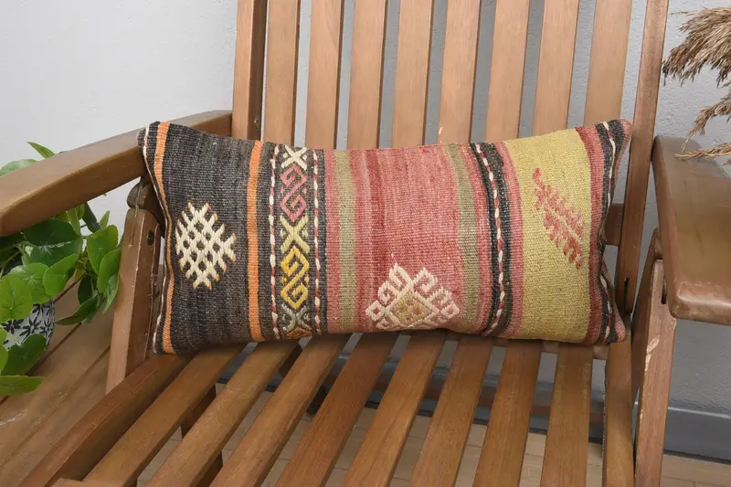Rotes Kelim-Wurfkissen, 20x10 besticktes Vintage-Kissen