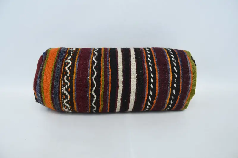 Handgefertigtes blau und orange besticktes Kissen, Vintage Kissen mit Reißverschluss