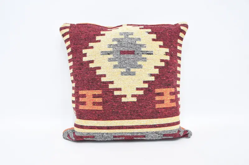 Rotes Hanf-Wurfkissen mit gesticktem geometrischem Muster, quadratisches Vintage-Kissen