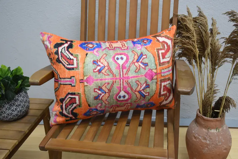 Handgefertigtes orangefarbenes und bronzefarbenes Blumen-Leinen-Wurfkissen, Vintage-Rechteckkissen