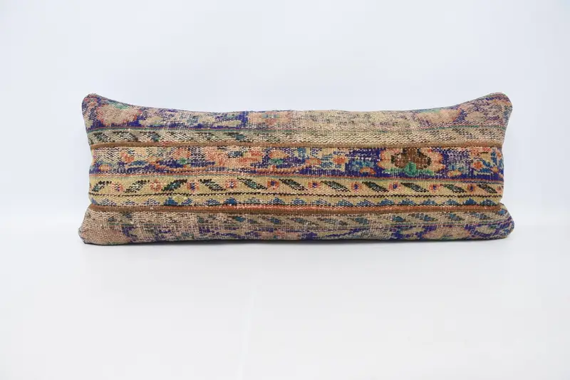 Blau & Orange Vintage besticktes Kissen, handgemachtes Leinenkissen
