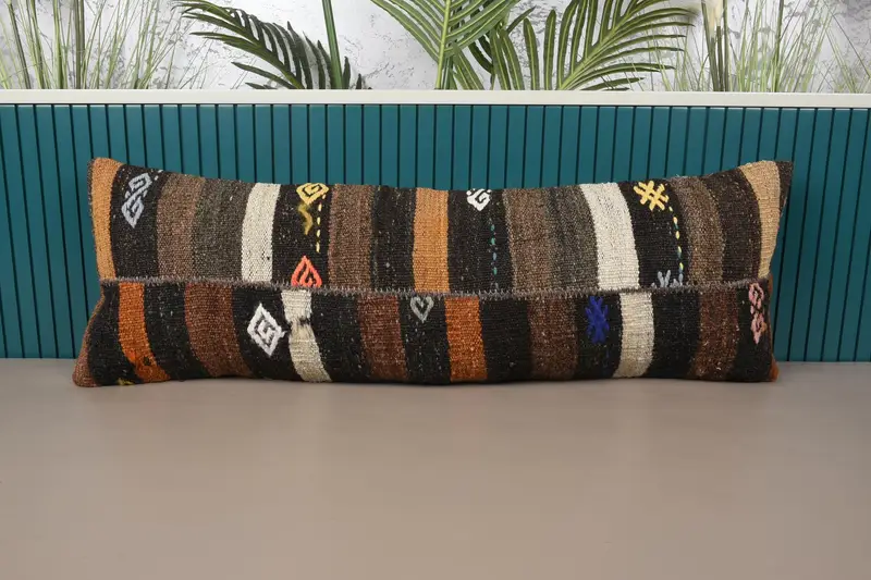 Braunes und schwarzes Patchworkkissen, 12x36 handgemachtes Wurfkissen