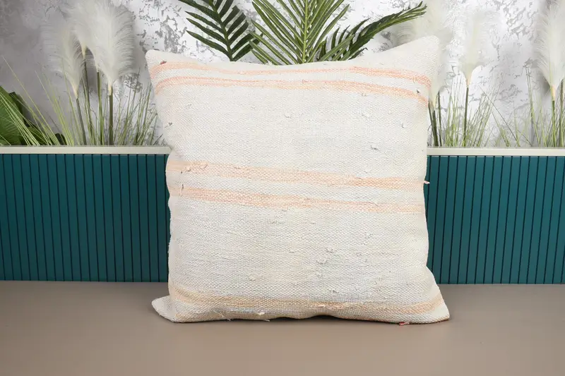 Beige & Orange gestreiftes Kissen, Vintage besticktes Wurfkissen