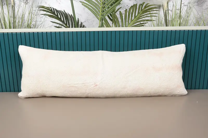 Beigefarbenes Südwest-Kelim-Wurfkissen, 12x36 besticktes Kissen