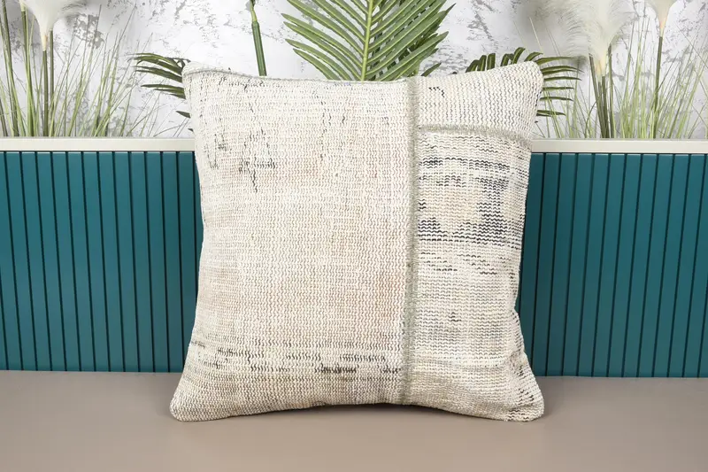 Beige-braunes Patchwork-Wurfkissen, 20x20 besticktes Kissen