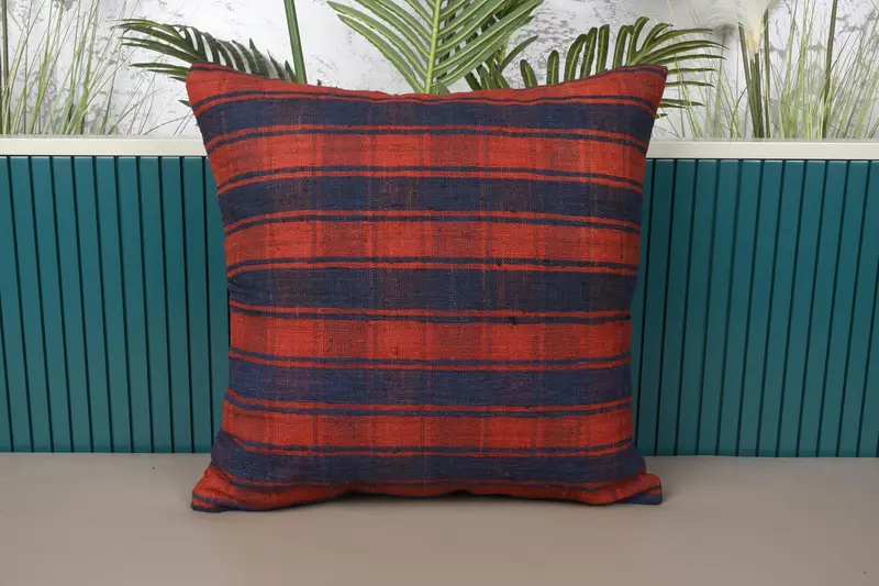 Rot & Bronze gestreiftes Wurfkissen, 20x20 besticktes Kissen
